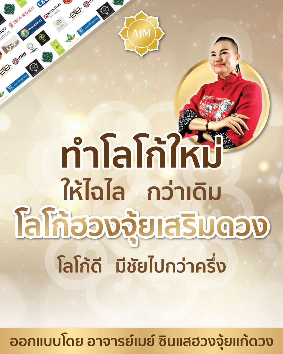 โลโก้ฮวงจุ้ยแบรนด์ ออกแบบโดยอาจารย์เมย์ ซินแสฮวงจุ้ยแก้ดวง เพื่อให้ธุรกิจคุณ มีโลโก้ที่สวย ดูทันสมัย เป็นมืออาชีพ ตัวตนชัดเจน เสริมดวงธุรกิจ เฮงๆรวยๆ
